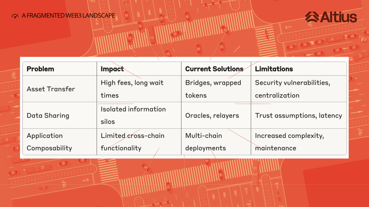 As the CTO of Altius Labs, I've witnessed this problem evolve from a minor inconvenience to an existential threat to Web3's future. Today, we have hundreds of blockchains and Layer 2 solutions, each promising to be the "Ethereum killer" or the "next big thing." But here's the uncomfortable truth: we've created a fragmented digital archipelago where value and innovation remain trapped in isolated silos.
